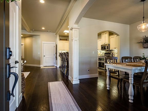 Beautiful, craftsman style, single level home in the Twin Creeks Development. Pride of ownership and curb appeal, highlighted with gorgeous landscaping, vinyl fencing and front porch. Open concept floor plan with custom painted beamed ceiling, fireplace, built-ins and french door to covered patio. Kitchen with walk-in pantry, custom painted cabinets, breakfast bar and stainless appliances. Guest bedroom wing features light and bright bedrooms. Utility room with tile floor, broom cabinet and full overhead cabinets. Double doors to master bedroom and bath with double vanities and tile shower. Finished 2-car garage with convenient rear access includes pull down stairs to storage area. Call today to schedule your tour of this stunning home!