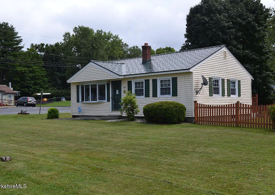 Well maintained 3 bedroom ranch home in the heart of the Berkshires. New kitchen! Quartz countertops and radiant heated tiled floor. All appliances will stay! The rest of the main floor has hardwood and baseboard heat. Basement is finished and carpeted and very spacious. ROOF will last lifetimes as it is metal, so you'll never have to worry about replacing it. High efficiency gas burner for all your heating and hot water needs. Deck in the rear steps down to a great fenced in backyard with a shed to store your belongings. House is on a corner lot and is close to shopping areas of Pittsfield.
