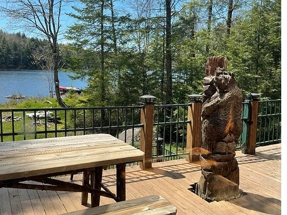 Kayakers dream!! This Wilderness Lodge is a chateau right on the water of the outlet leading to Canada Lake. The road itself is literally inside the Adirondack State Park. It's miles long and perfect for bike riding and hiking (trails right off road). There is also a public swimming area. The house itself is decorated in the ADK style. The cabin has been recently updated with forced heat and stays toasty warm. The house is split into two sections. The main section has the bathroom, kitchen, dinette area, living room with fireplace and TV, and the master loft that looks out onto the water. The master loft has a half bathroom. A private door leads to the guest area, which has its own living room (TV and fireplace) and bedroom loft. Both sections have a sliding door that leads out to a large deck that overlooks the water. You can Kayak right off the dock, or take a float out to the middle of the lake for great swimming. The area itself is extremely private and is truly an escape into the wild. There is a third bedroom in a separate small outside cabin right on the water that has the best view of the lake. WiFi/satellite is available.