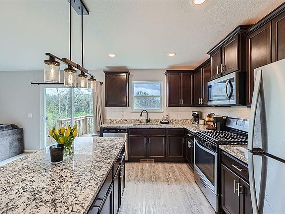 Welcome to this gorgeous house located right on the Montrose disc golf course! The main level features an open layout with a large living room, connected to the dining space and kitchen is the perfect place for enjoying the natural light and ample space. The kitchen is equipped with stainless steel appliances, a brand-new tile backsplash, and plenty of counter space and cabinets. The main floor is finished with a half bath and 2 bedrooms. The large primary bedroom has a beautiful ensuite bathroom and walk-in closet. The lower-level features two additional bedrooms, a family room, a bathroom, and a large unfinished area to design your own space. The downstairs walk out patio is the only one on the block and perfect for quick access to the spacious backyard! Enjoy the stunning views overlooking the disc golf course and small pond from the deck. Don't miss this one - come visit today!