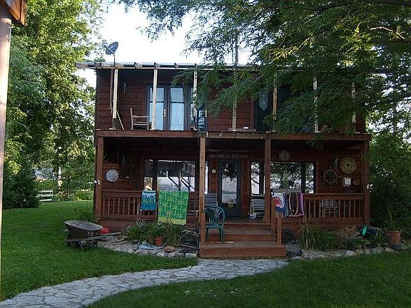 Indian Lake vacation home on Minnewauken Is;and. Lake front property on large 1/3 acre lot measuring 80x168. First floor 28x36 with open floor plan with kitchen, full bath.bedroom,TV area, living room, carpet and tile floors. frig,stove.microwave, garbage disposal.Plaster ceilings with solid wood walls on light oak finish. Second floor 28x44 with open floor plan,high vaulted ceilings, pine wood floorings, stucco walls and natural wood work.Large spare bedroom. french doors and loftarea.small bedroom/office. master bedroom with full bath and whirlpool tub,tile floors. Upper deck with great view of lake. Attached two car garage with side utility room.washer/dryer.hotwater tank and seperate heat source. Gas force air furnance ground floor, seperate gas heatermaster bedroom with wood burning stove and electric base board heat spare bedrooms. Cover single boat well with upper deck and launch ramp. Private drilled well, central sewage.
