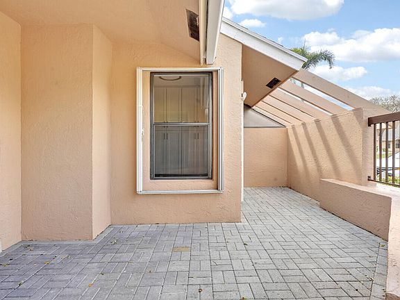 This 55+ unique corner water front villa features one of the lowest HOA's in Boca Raton - The villa has a paved walkway to a covered front porch. The villa comes with complete accordion shutters for hurricane protection, a new roof 2024 which qualifies for the maximum wind-mitigation credit for insurance.New AC unit 2023, and new water heater 2024, new gutters 2025 and new lights and fans throughout. New interior doors including all closet doors. The kitchen has a breakfast area, new white cabinets with quartz counter tops and stainless steel appliances. Laundry area has brand new washer and dryer. Both guest and master bedroom have white cabinets with quartz counter tops. Master bathroom features a walk in closet, linen closet, fully done shower and a sliding door leading to the screened porch. The screened porch has storage space and new white tile floors where you can enjoy peaceful views of the lake. Two parking spaces in front of the unit. The Clubhouse has a pool, sauna and lake views. 2 pets are welcome up to 20lbs each.