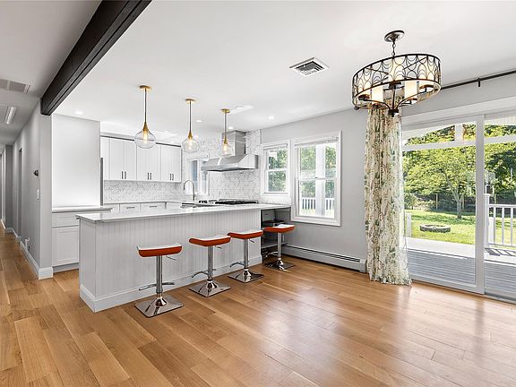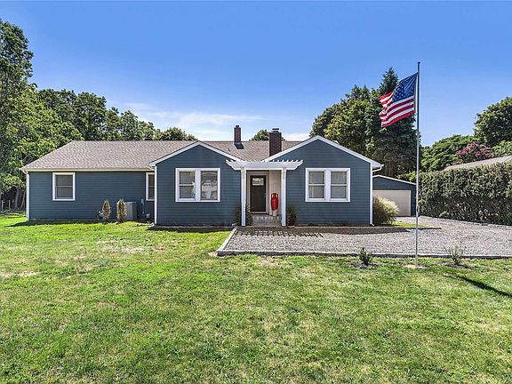 Improved price 11/4/2022 This beautiful ranch located in the Orient - East Marion Park District with beach rights is stunning! High quality detail throughout. Enter the front door and feel the comfortable open floor plan. This home offers a chefs kitchen with Thor gas stove, quartz counter tops and the finest tile backsplash to the ceiling, living room with a wood burning fireplace, both dining and breakfast table areas, three bedrooms with one of the finest en-suite bathrooms, office, sunroom, laundry room, and mud room. Entertain a large gathering on the composite deck which overlooks the level half acre property with a winter water view. There is room for a pool ! Easy access to Orient point Ferry, Beaches and Greenport Village shops and restaurants. This home is ready to move right in !