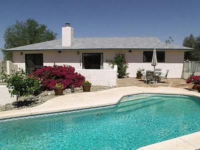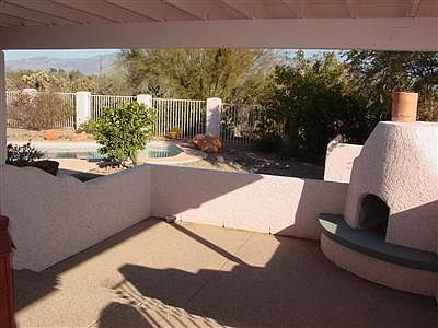 Charming Southwestern Home on 1.78 acres with secured gated entry, privacy and views. Driveway leads to courtyard entry into Great Room with cathedral ceiling, beehive fireplace, wood floors and ceramic tile. Open floor plan with expansive kitchen with new stainless steel appliances, ceiling fans thru out home. Back yard is fenced in with a beautiful pool and outside Kiva fireplace with conversation pit. A separate building to the left of the home can be used for storage, man cave, or additional live in space. It comes with it's own a/c and beautiful flooring. The property is zoned to allow Horses. You may have horses on the property and it comes with an additional building to store hay, tack material etc. You will need to provide the arena fencing. A Must See! PETS OK UPON OWNER APPROVAL