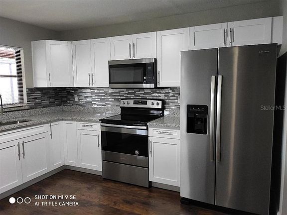 Great Property!!! Enjoy the pool in the middle of the summer!!! Not flood insurance!!! It is not a 55+ year community!!!Completely remodeled 3 bedroom / 2 bathroom with a big new kitchen with wood cabinets and granite counter tops with new stainless steel appliances. Also new bathrooms with new vanity mirror and granite counter top. This beautiful home has a functional floor plan with new laminate through kitchen ,living room and bathroom and bedrooms.New double garage door and opener installed in 2019. Air conditioner is new with all the documents for guarantee. New water heater (2019). New painted walls inside and outside. The backyard has a really nice pool and offer plenty of privacy and a very nice space for enjoying your spare time .The seller agree to give a $5000 credit for marcite pool resurfacing or buyer's closing cost. Come and this property your home before is gone!!!