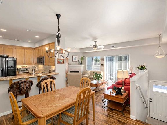 Light & bright 2 bedroom townhome w/AC. Living rm has wood laminate floors, cozy gas fireplace w/ slider to deck. Dining area flows into kitchen w/breakfast bar, SS appliances, granite composite sink & granite countertops. Spacious master bdrm has ceiling fan, WI closet, master bath w/dual sinks. 2 car garage w/plenty of storage space. Nearby shopping, restaurants, Fanno Creek Trail, Hiteon Meadows Park & Summerlake City Park.
