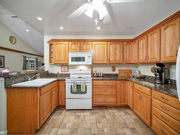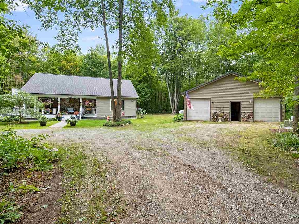This 3 bedroom Lakes of the North home has gorgeous features including granite countertops, vaulted ceilings, and laminate flooring. The master bedroom leads out to a gorgeous deck and includes an attached bathroom with a walk in closet. This property is perfect for anyone that loves their privacy with .86 acres of beautiful trees surrounding the home. If you enjoy socializing, the association offers a new clubhouse with a pool, horse stables, a restaurant, and more. With a pull through 2.5 car garage, you will have plenty of space for your snowmobiles for the nearby trails or a boat for the lake!