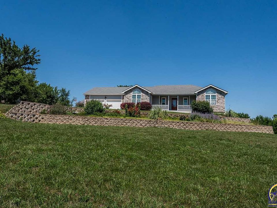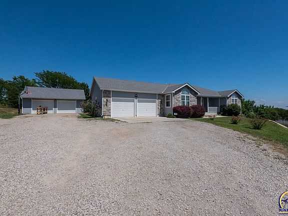 Wonderful custom built walkout ranch w/brand new carpet! About 600 feet of gravel; located just S. of 110th Rd. Mn flr features: frml LR, eat-in kitchen, master suite w/full BA & walk-in closet, 2 secondary BRs w/full BA in a "split floor plan," & mn flr laundry. Bsmt features: fam rm, 2nd kitchen, 4th BR, full BA, & storage room. Attractive setting with rolling hills; set atop the hill for country views. Note: corian counterops, cathedral ceilings, fun cedar look in the basement, 2nd det gar is 28 x 22!