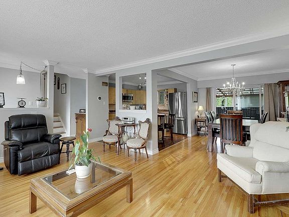 Lovingly maintained and updated over the years. Over 2200 sq ft 4 bdrm, 3 bath, 2 kitchen, on no through part of 152 St in popular Birdland. Main fl with open plan, ideal for entertaining. Kit with large island, newer appls and all 3 bathrooms renovated, 2 recently. Other updates incl refinished hdwds, windows, heat pump & air cond, drain tiles and crown molding. New Hardy brd exterior and paint. Bsmt has new 3 piece bth updated wht kitchen and sep entrance. Huge 20 x 19 raised covered deck off dining rm overlooking a private bk yard with lower grd level deck with water feature and landscaped gardens. Within walking distance to Guildford Mall, rec centre, restaurants and schools. Easy access to Hwy 1, Port Mann, T&T and buses.