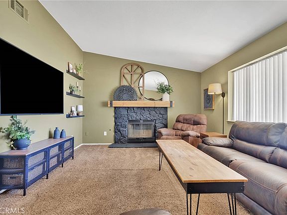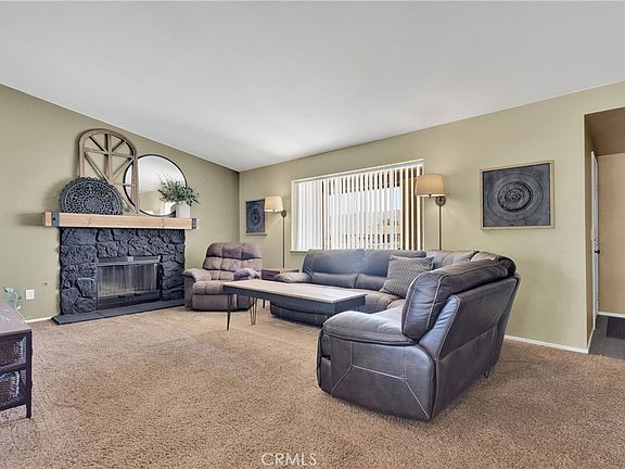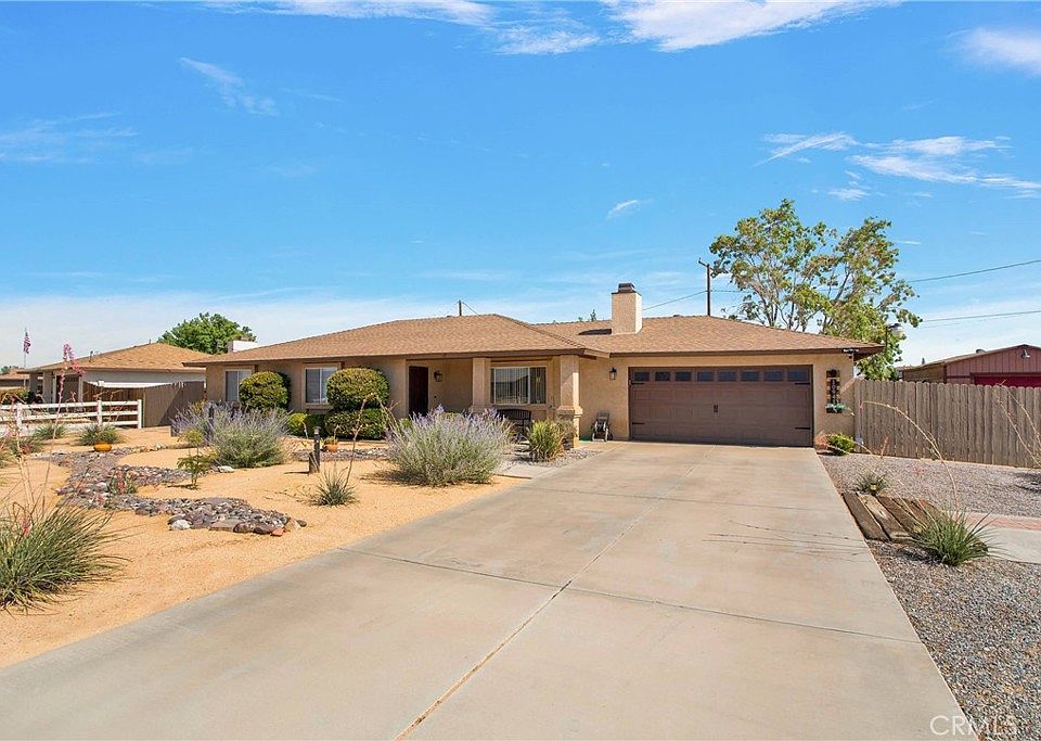 Welcome to this delightful 3-bedroom, 2-bathroom home, perfectly situated south of Bear Valley in the heart of Apple Valley. This property offers a warm and inviting atmosphere with its open floor plan and vaulted ceilings in the living and dining rooms, where you'll enjoy stunning mountain views. The cozy living room features a fireplace, perfect for those chilly evenings that will come soon.