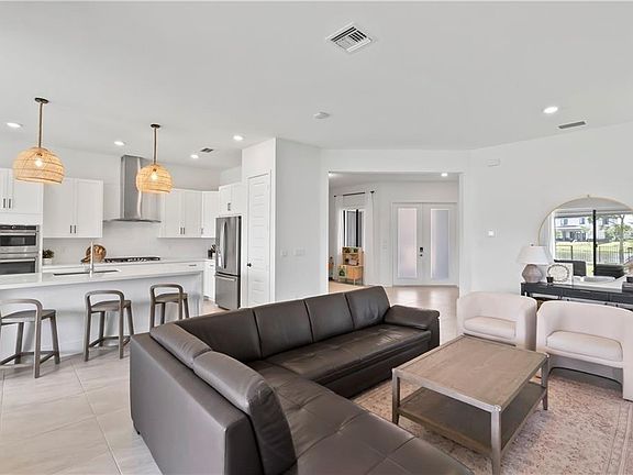 *Must See in Cascata at Miralago!* This 5BR 3.5BA Della Model sits on a larger lakefront lot on one of the newest streets in the community. Comfort meets practicality with a full guest suite on the first floor with step in shower, abundant storage, flexible loft space, and an upstairs laundry room. With high ceilings and huge hurricane impact windows, this home offers expansive views and bright living spaces. Modern kitchen appliances & gas range perfectly complement the white shaker cabinets & quartz waterfall kitchen island. Built in 2021 & offers dual ACs & french drains installed at the gutters. Community HOA grants access to all Miralago amenities including: two pools, tennis, 3 gyms, splash pads, playgrounds, saunas, billiards rooms, event space & monthly community food truck events.