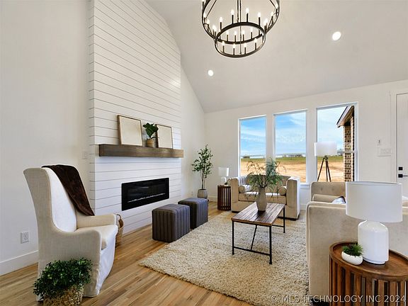 Welcome to your retreat on a sprawling 0.89+/- acre countryside estate, where modern elegance meets rustic charm. This newly constructed gem boasts four bedrooms and two bathrooms, each adorned with a unique blend of hardwood floors, unique tile and plush carpeting, creating an inviting atmosphere throughout. The heart of the home lies in the gourmet kitchen, featuring a striking island centerpiece, perfect for culinary adventures or casual gatherings. Discover tranquility in the spacious master suite with its luxurious bathroom, complete with a walk-in tile shower and a sumptuous soaking tub. Upstairs, a versatile bedroom offers privacy and flexibility, ideal for guests or a home office. Complemented with both quartz and granite countertops throughout. Step outside to your own private oasis, complete with a concrete driveway leading to a double car garage. The garage features epoxy floor finishes, ensuring durability and a sleek appearance. Additionally, foam insulation has been added to the attic area, providing enhanced energy efficiency and comfort. Your outdoor entertaining space is complete with a built-in grill, making dining outside convenient and enjoyable. Nestled south of Marietta, with easy access to I-35, this property offers the perfect blend of rural serenity and modern convenience. Experience the epitome of country living with all the luxuries of contemporary design.