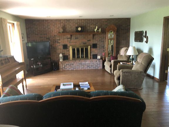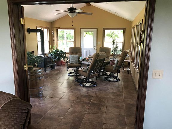 Gorgeous 11+ acre mini farm located near to Huntingburg, Jasper and Evansville. Just 5 min. off interstate 64. This 3-4 bedroom home with 3 full baths and a new sunroom has 2 fireplaces, one in the huge great room and another in the full walkout basement. The home has newly installed hardwood flooring in the great room, bedrooms and beautiful Walnut in the master bedroom. The newly constructed sun room on the main level just off the great room offers the opportunity to enjoy the vistas from the many windows to the mini farm to the west, south and to the vineyard to the north. The farm has 1/2 acre of producing wine grapes and seller has equipment to make the wine. 2 aces of woodland provide habitat for the visiting deer. The hot tub is just out the door from the sun room. The large well equiped kitchen has adjoining dining room. The foyer entry leads to the open staircase to upper level. Mini farm includes a 30 X 40' Pole barn, a 20 X 28' wood shed and a 18 X 22' storage shed. The fine home comes with a Home Warranty as well. Several fruit trees and a small pond add to the country charm. Come visit-stay lifetime.