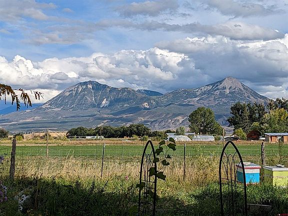 Come fall in love with this dreamy small acreage 3 bed/2 bath hobby farm tucked in to one of the most beautiful settings in the North Fork Valley with expansive views of the West Elks, Black Canyon and the Grand Mesa. South facing front windows allow for an abundance of natural lighting. Use the second living room as a rec room, family room or a bedroom. Two wood stoves (one is only a couple of years old). Two-car garage with new garage door. New exterior paint and stucco. Full garden-level basement. Two basement bedrooms are non-conforming. Ample irrigation water on desirable Farmers Ditch and North Fork Lateral. Sprinkler system and pump are new and is piped throughout the entire property, including the hay field. A lush yard with trees, shrubs, flowers and a field that has produced alfalfa/oat for the past two years. Fruit Trees include plum and pear, plus some grapes and a peppermint patch. Hotchkiss is growing! Hop, skip and a jump to town where there are a few new restaurants opening, retail, grocery, schools, Delta County Fair, and much, much more! Hotchkiss is called "The Friendliest Town Around". Come see for yourself!