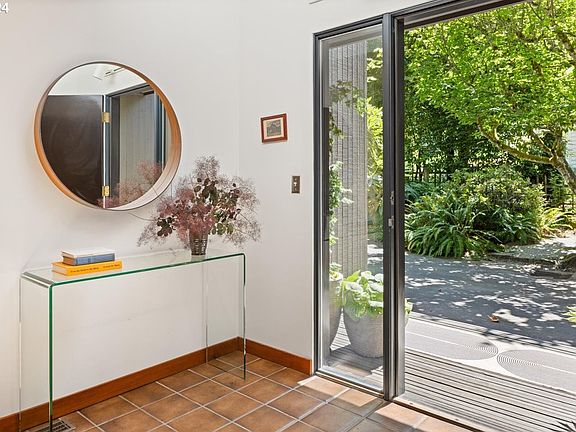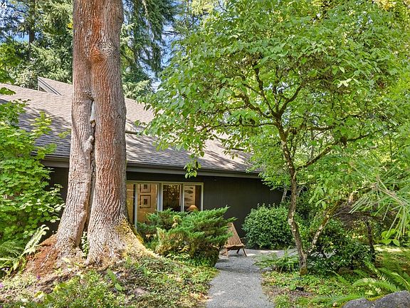 This Saul Zaik and Jim Miller-designed home is a timeless example of Northwest mid-century modern architecture. The thoughtful layout prioritizes privacy and fosters a deep connection to nature, with expansive windows and doors providing seamless access to the Japanese-style garden crafted by renowned landscape designer Masa Mizuno.This architectural gem, constructed in 1970 and now on the market for the first time, seamlessly integrates with the mature forested surroundings on a quiet road in Portland's Dunthorpe neighborhood. The home's interior features irreplaceable old-growth cedar paneling and numerous skylights, creating well-lit and inviting spaces. The formal living room has vaulted ceilings, a fireplace, and sliding Andersen doors that open elegantly to the front garden. Additional sliding doors in the spacious dining room and family room add architectural interest and access to a large back deck overlooking the .45-acre lot and the conservation zone beyond.The kitchen features beautiful original teak cabinetry and an efficient layout. On the main level, you'll also discover two stylish bedrooms, one en suite, with vaulted ceilings, skylights, and hardwood floors. Upstairs, the primary suite awaits, adorned with warm wood paneling and skylights showcasing the lush and calming tree canopy above. The adjacent loft provides the potential for an office, creative bonus space, or room to expand the owners' quarters.This home has been well-maintained by its original owners, who have lovingly preserved its character and functionality while making important upgrades such as top-grade Andersen Fibrex windows, a tankless water heater and furnace, and a new exterior stain. This home is a true style icon for all lovers of midcentury modern design. Don't miss the feature about this home in Portland Monthly online.