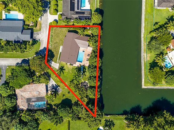 Completely renovated 2982sq ft under AC, 5 beds, 3.5 baths, set on an oversized 21,000 sq.ft. lot,. This property offers a spectacular and rare find view of the junction of two canals, making it truly one of a kind in Pinecrest. 245sq ft lineal over canal. Like-new home, featuring all-new plumbing, electrical, A/C, floors, and impact windows. A grand reception area opens to stunning canal views, while the spacious kitchen includes abundant storage, a large island bar, and a huge tv area. Laundry with sink. Ideal layout w a hallway that connects to all the rooms: 2 "Jack & Jill" bedrooms sharing 1 full bath, 2 additional bedrooms sharing a full bath used as cabana bath. Primary suite with walk-in closet and large bath. Powder room. Exquisite finishes throughout the house. Rare find.