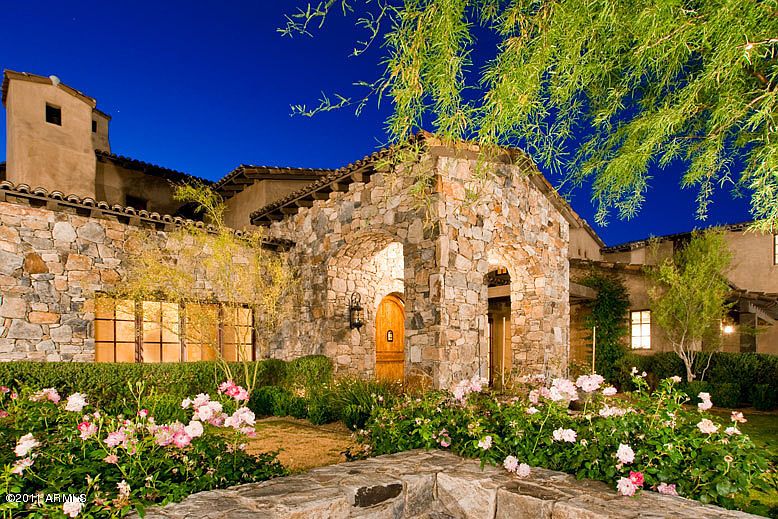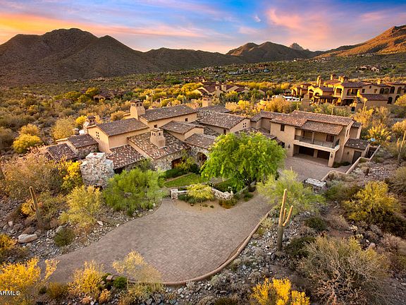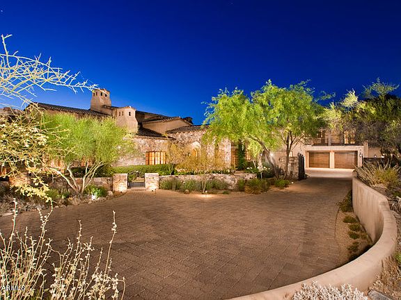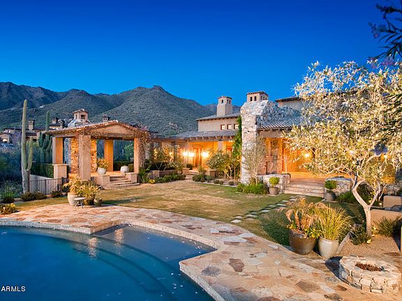 One of Silverleaf's finest estates built by Argue Custom homes this spectacular property sits on just under 2 acres. Beautiful mountain and city light views will stun your senses in one of the many outdoor living spaces or within this elegant estate. Hacienda style design features include soaring ceilings, exposed wood beamed trusses, travertine flooring, venetian plaster in main living rooms, master suite and office. Master Suite has a luxurious private bath, charming courtyard. Gourmet kitchen with Viking appliances, granite counter tops and beautiful custom built-in cabinetry. Guest rooms upstairs have a bonus room. Over 8,000 sq. ft., 5 bedrooms, an office, and 6.5 bathrooms. Charming courtyard, pool, spa, covered patios, ramada and views!