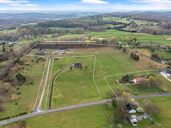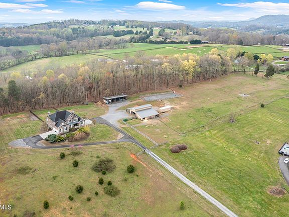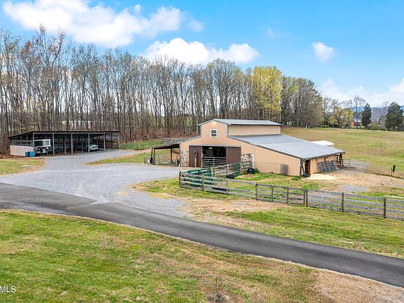This idyllic small farm is just 12 miles from Knoxville, TN and a short drive to the University of Tennessee. Located 1 mile off Rutledge Pike, with nearby grocery stores & shopping in Blaine, the home is surrounded by stunning views of hills & pastureland, with fruit trees that include pawpaw, jujube, & fig. The 15+ acre property has 2.75 acres in mature woodland with riding trails and the remainder in extensively cross fenced pastureland, ideal for rotational grazing. A security gate with a solar powered automatic opener provides entry. The house features hardwood floors throughout the main and upper floors, and low-maintenance laminate in the fully finished basement. It has 4 bedrooms and 4.5 bathrooms, ideal for multi-generational living and includes a master bedroom on the main with 2 walk-in closets, a large bathroom with step-in soaker tub, dual sinks and ample storage plus a sitting room area with its own fireplace, patio doors and access to a covered deck. Cook and entertain in the kitchen with features such as center island, granite tops, soft-close drawers, & generous cabinet space with wine rack. Spacious living room with a fireplace, high ceilings & enclosed blinds. 3 additional bedrooms can be found upstairs, while the finished basement level offers 2 large rooms, 1 smaller room, full bathroom & extra storage. Large, covered back deck with Trex decking overlooks a private fenced back yard. Chair lift system installed on front entry stairway. High efficiency A/C and heat system is only two years old. Hot water provided by a propane on-demand system. 5-stall horse barn contains overhead fans and lights, wash stall, tack area, two frost-free hose bibs, updated electrical wiring, extensive hay storage in the loft & a central aisle covered in ¾ inch rubber matting. Stalls exit onto a covered overhang to provide protection during turnout.