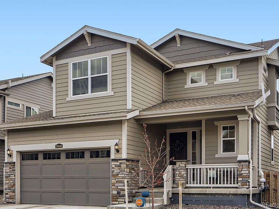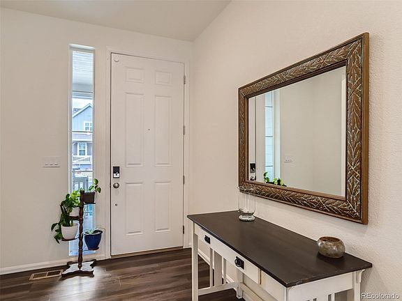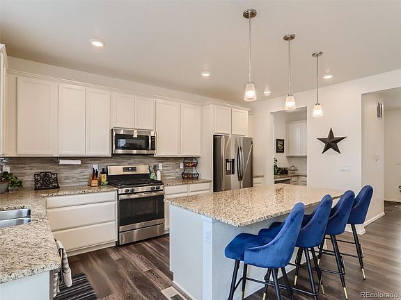 This lovely home is a Lennar Evans floorplan built in 2020. Located in the highly desirable Turnberry neighborhood, this home has a great open floor plan on the main level. Enter through the foyer to discover the spectacular kitchen with all the bells and whistles, including all stainless steel appliances, gas stove and range, a large island with seating, and a large butler's pantry makes this kitchen a chef's dream. Also, on the main level is a mud room with storage and bench seat located directly off of the garage. The open living and dining room and half bath located on the main level, make it a breeze to entertain your guests. In the backyard, you will find a great concrete patio for hosting on the warm summer days. Upstairs are 4 Bedrooms located on the same level along with the primary ensuite bath, a full bath, and laundry conveniently located close to the bedrooms. The full unfinished basement is waiting for your final touches. This home is located nearby to parks, walking trails, the Bison Ridge Recreation Center, neighborhood pool, schools, shopping, DIA and easy access to I-76. Solar panels save on your energy bill, and even better, there is no monthly lease payment! Radon Mitigation system was installed 2022. One Year Homebuyer Warranty will be provided for your peace of mind. Don't miss out on your opportunity to make this near new property yours! It won't last long.