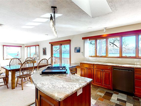 Keuka Lake-3 bedroom, 3 1/2 bath, year-round home right on the water, with a level setting, and 133' of all natural frontage. All new baths, contemporary kitchen with granite tops, 2-car attached garage, real boat house within the lower level of the home. So many updates....like new flooring throughout, newer roof, new 6000# boat hoist incorporated into the permanent dock system, water treatment system, new security system, and even the window treatments are new within last year. This is truly a gem and mainly furnished, so you're all ready for summer 2023! Delayed negotiations shall begin on Monday, March 13th @ 5pm.