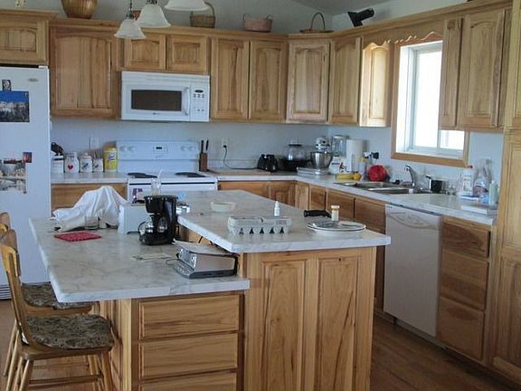 The main level of this home hosts beautiful oak floors and hickory kitchen cabinets. There is amazing natural lighting and views to the south from a lovely covered deck. The lower level walk out basement was designed to be used as an income producing unit. The lower unit is a nice open floor plan with kitchen, laundry, bath and two bedrooms. Brokered And Advertised By: Real Estate Center of Belle Fourche Listing Agent: Cathy Eaton