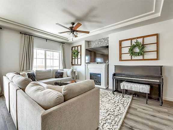 Discover Dayton Way, the epitome of family living in the highly sought-after Belle Creek neighborhood. This unique property boasts 4 bedrooms, 4 bathrooms, and 2 loft spaces, providing ample living and storage options. Immerse yourself in luxury with new flooring and ample natural light throughout. The updated kitchen features modern appliances, a pantry, and a large island, perfect for entertaining. Retreat to the primary bedroom with en suite bath, while guests enjoy privacy in the additional bedrooms and loft spaces. Mountain views from many of the bedrooms. Enjoy the outdoors with a newly landscaped backyard complete with a built-in smoker, grass area with sprinkler system, and fire pit. With a 2-car garage, newer furnace, and new garage door opener, this home has it all.