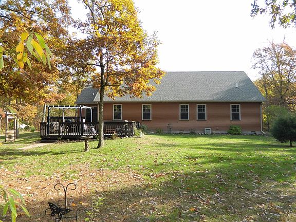 Immaculate Ranch on 1 Acre wooded lot. Nice entryway with landscaping and front porch deck. Ceramic Foyer that opens up to a Huge Vaulted Living Room with hardwood floor, canister lights and beautiful accent wainscot wall. (6 panel doors highlight home throughout). Large, eat-in Kitchen with newer appliances, center island and walk out patio doors. Formal Dining Room with trey ceiling and excellent backyard view. Master Bedroom has unique vaulted ceiling and Bedroom #2 has Bonus, built-in office cove. Finished Laundry Room includes washer and dryer. 3.5 car Garage is complete with epoxy floor, generator hook up and extra side bay garage door. Oversized Yoder shed only 3 years old. Great views from all around, especially from the back deck in your own hot tub. Yes, that stays too! Sellers are giving you everything to simply move in and relax. You're going to love this home! Come take a look today.