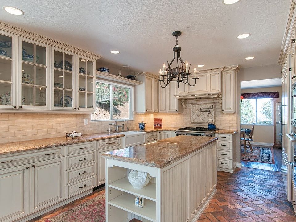 Mt. Helix Estate on .59 acre, 4 bedrooms, 2 1/2 baths with 2790 sq. ft. of living space. Beautiful kitchen with re-claimed brick flooring, granite counters, pantry, farmers deep sink, chefs island, Bosch dishwasher, Decor 6 gas burner stove & a electric oven and new cabinets. Maple floors in dining room and living room. 4 bedrooms upstairs including a large master bedroom suite. Balcony views from two bedrooms. Office or workshop by patio and garage, RV parking, and wonderful schools nearby.