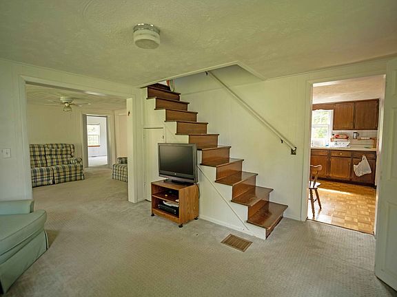 Move-in ready, well-maintained, "no steps" rancher, set on 1.25 acres, features 2BR, +2 bonus rooms, 1.5 baths, eat-in kitchen, laundry room and tons of on-grade storage/work space. Enter via a lovely covered, on-grade, brick porch to a spacious living room. Note the custom swirled ceilings! The den/dining room, eat-in kitchen, and two BRs (added in 1997) are all on the 1st flr. Both BRs feature cozy walk-in closets and half-bath in one. No Steps! All living areas are on-grade, ideal for seniors! The second floor has two finished bonus spaces that could be bedrooms, an office or a cozy loft. The 3 basement sections each have separate outside, on grade, entrances and would make great work shops or storage areas. The rolling 1-1/4 acre (+/-) lot is cleared with a fenced-in flat garden area. Metal carport, 3 out-buildings and a underground cellar provides tons of additional storage space. Main section built in 1930 with 16'x24' addition in 1997.