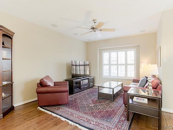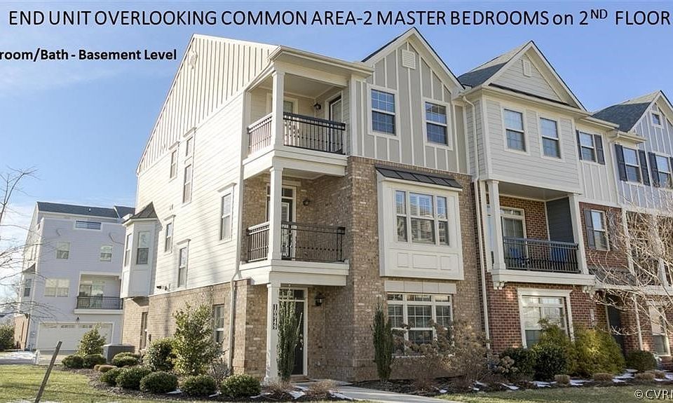 Meticulously maintained END unit featuring 2 primary bedrooms on 2nd floor. Special features include plantation shutters and wide hardwood floors on the main level, not to mention a family room with surround sound speakers! The first level features a third bedroom( or office) with brand new carpet with full bath. There is a dining area next to the family room but the sellers uses it as a reading nook. The kitchen features an enormous island and light filled breakfast nook with pantry. 2 well proportioned primary bedrooms- each with walk in closets and luxurious baths-are located on the second floor. Don't forget the balconies and a two car garage. BEST OF ALL IS THE LOCATION OF THIS PARTICULAR END UNIT AS IT THE FURTHEST AWAY FROM ANY MAIN ROADS AND OVERLOOKS COMMON AREA NEXT TO A SINGLE FAMILY HOME NEIGHBORHOOD. Walk to grocery stores and eateries. Minutes from I-64 and Short Pump Town Center.