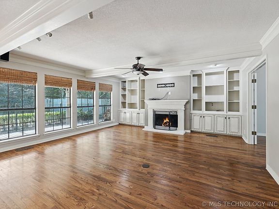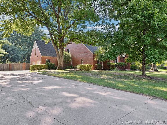 Inground pool! Quality full-brick south Tulsa home located on large 1/2 acre lot. Wonderful back yard setting with covered patio open to the pool area. Numerous large shade trees. Real hardwood floors throughout the first floor along with plantation shutters. Downstairs are two large living areas, formal dining and separate office. Office with closet and access door to master bedroom so it could also be a potential nursery. Kitchen with granite counters, 2 ovens (one electric / one gas) that opens to family room with wall of windows to the back yard & pool area. Downstairs master suite with granite bathroom and whirlpool. Upstairs includes game-room, 3 large bedrooms and 2 full baths with granite vanities. Great home! Seller providing Home Warranty.