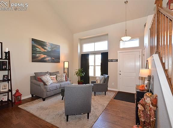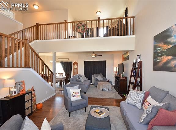 Beautiful 2-story home with finished basement located in desirable Paint Brush Hills, a quiet Peyton neighborhood known for the panoramic Colorado views and a small-town feel. This home features hardwood floors, open kitchen with granite countertops. Upstairs you'll find a large master with 5-piece bathroom and walk-in closet, 2 more bedrooms, and an open loft space. Basement includes huge rec room, 4th bedroom, and full bathroom. AC, ceiling fans throughout, tile floors and shower surrounds in bathrooms, fenced backyard with artificial turf, large covered wood deck, and many more details you have to see. Solar is fully transferrable to the buyer. Backs to open space. Close to schools, parks, and Antler Creek Golf Course.
