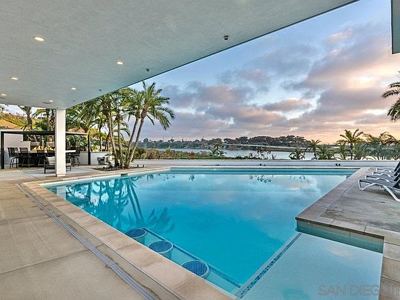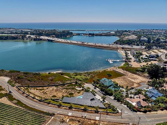 Introducing a stunning, modern custom waterfront estate on the serene lagoon in Carlsbad, offering breathtaking views of both the lagoon and the ocean. This luxurious home features floor-to-ceiling windows that flood the space with natural light and accentuate the impressive ceiling heights. Designed with privacy and security in mind, the property boasts a sleek, contemporary design with clean lines throughout. Upon entering, you are greeted by a state-of-the-art kitchen equipped with top-of-the-line stainless steel appliances, seamlessly flowing into a spacious dining area and adjacent family room. Large sliding glass doors lead you to your own backyard oasis, complete with an incredible pool featuring in-water bar seating, an outdoor kitchen, firepit, pool shower, and outdoor bathroomall set against the backdrop of stunning lagoon and ocean views. The second floor offers a grand loft area and a massive primary suite with two expansive walk-in closets. The primary bathroom exudes luxury, and four additional bedrooms provide ample space for family or guests. Expansive decks on this level offer some of the most spectacular views imaginable. Convenience is paramount, with laundry facilities on both floors. The property also includes an attached guest house with its own kitchen, living room, bedroom, and bathroom, providing the perfect space for visitors or extended family. Multiple garages provide plenty of storage and parking options. All of this is located just minutes from freeways, shopping, restaurants, and top-rated schools. Opportunity to purchase 2 additional lots. Build another home, pickleball court, sport court, ADU, or a luxury garage.