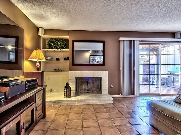 Great condo close to everything! This single story 2 bedroom home has 2 full bathrooms. The open floor plan has tile flooring throughout the house. The kitchen features upgraded cabinets with lots of space, a new gas range and a redone tile counters. The living room has a fireplace and surround sound. The hall bathroom has an enclosed shower/tub combination with tile counter and storage under the sink. Both the Master bedroom and other bedroom face the front of the home. The master bathroom has a large tile shower and a tile counter with lots of storage space. The master bedroom is larger in size and has a large closet with mirrored closet doors. The other bedroom also features mirrored closet doors. The back patio has a wood cover with enough room to barbecue and enjoy the outside. The garage has extra storage racks built in with the washer and dryer area and a small outdoor laundry sink. The two car garage has direct access to the house. This neighborhood is close to schools, shopping and the freeway!