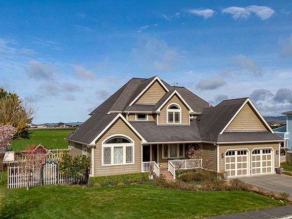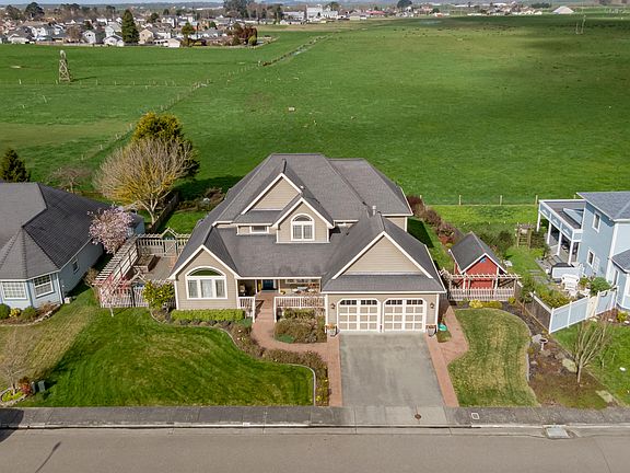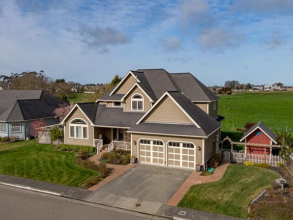 This custom home is located in the coveted Cream Court Subdivision in the Victorian Village of Ferndale. Home has a great open floor plan with both formal & informal dining room, hardwood floors, large living room, plus a double sided gas fireplace between the kitchen/family room and living room. Master suite is located downstairs and features a walk-in shower, double sinks & double closets. Upstairs includes three bedrooms, a large remodeled bath & fourth room that could be used as an office, game room, gym, library, or music room? Sunroom addition includes pastoral views of the Ferndale farmland. Property also features an oversized two car garage, garden shed, and fenced rose garden. This home includes many upgrades and is only a few minutes to historic Main Street, parks, and beaches.