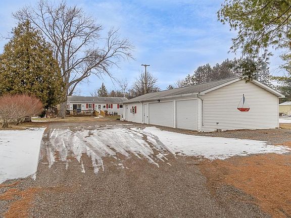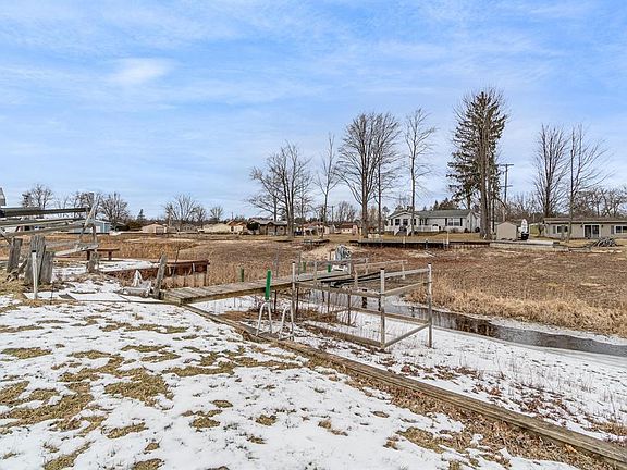 Be ready for lake life with the return of Wixom Lake in the future! Now enjoy a large 1/2 acre lot with 75' of waterfront on an extra wide canal leading to the main lake. The long gravel drive off the paved road takes you to the huge 3 car detached garage with an attached heated/cooled large workshop or would make a perfect guest space! The comfortable 2 bedroom, 1 full bath home can be your year round home or your weekend get away. Eat in kitchen with a slider to the deck. Large living room with a bay window overlooking another deck and the canal. Primary bedroom offers a very spacious sunroom that is heated and cooled with the rest of the home, make this your private office or sitting room. 2nd bedroom with full closet. Both bedrooms are located close to the full bath with tub/shower. Natural gas, Spectrum wifi, 5" well, storage shed, wood seawall & dock & vinyl windows are a few perks. Newer furnace & water heater.
