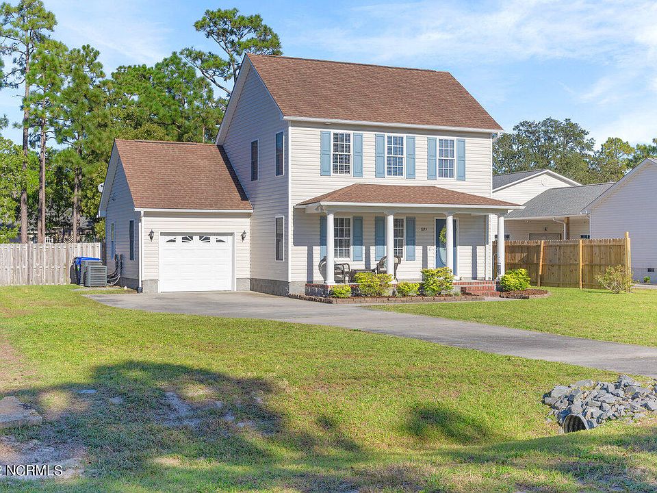 This is the one! Don't miss your opportunity to call this lovely home yours! This 3 bedroom, 2.5 bathroom charmer with a garage is nestled on almost a quarter acre and offers a fully fenced in back yard with a screened in patio on a quiet street in Boiling Spring Lakes. Upon entering the home, you'll find a spacious living room ideal for entertaining, kitchen, half bath, formal dining room and your primary bedroom with an en suite. Upstairs boasts two more bedrooms, a full bathroom and a graciously sized walk-in attic providing access and room for extra storage. The location of this home is ideal being just a short drive to Downtown Southport and Oak Island.