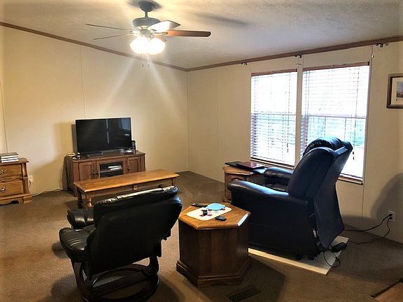 Charing home located in a beautiful setting and close to town. Home has 2 bedrooms, large living/dining area, nice kitchen, and laundry room. Master bedroom has it's own private bathroom and large closet. You can enjoy the views of the mountains from the covered deck. Home sits on over 4 acres and is bordered by Forest Service. This would make a wonderful full time residence or vacation rental. Property goes to the top of the mountain and does have another potential building site above the home.