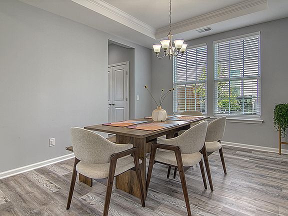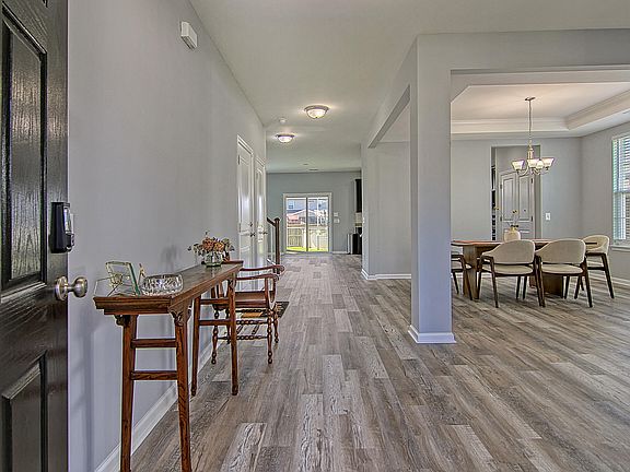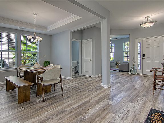 STUNNING 4 bedroom, 2.5 bathroom home in Hunters Bend! Natural light bathes this open concept home, highlighting the recently updated luxury vinyl flooring and paint that make this home as good as new. Granite countertops adorn the updated appliances in the spacious kitchen, while the formal dining features an elegant tray ceiling. The airy living room flows onto a shady screened in porch looking out onto the fenced in backyard and above ground pool. The comfortable master suite provides a walk in closet and dual vanity to suite all your needs. And a two car garage allows for ample storage, shop area, and includes a projector screen. We also love the turfed patio and smart front door lock. The amenities are also INCREDIBLE!