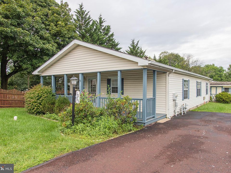 Welcome to Gwynedd Woods, the peaceful retirement community where YOU OWN YOUR LAND - no ground rent here! Come home to 1095 Gwynedd Woods Road, with its 23' x 7' front porch perfect for quiet mornings with your coffee and a crossword puzzle. Direct access from the porch is a kitchen you will surely appreciate. Two skylights make it a bright and ideal place to bake pies and cookies with the grandkids, or try out new recipes with friends. With ample counter space, room for a table, and convenient laundry closet, you will likely enjoy a lot of time in this cheerful space. Beyond the kitchen you're greeted by the open dining area seamlessly connected to the spacious living room with cathedral ceilings and plenty of natural sunlight. This open and modern floor plan is ideal for hosting all of your dinner parties! Your master suite feels spacious when you enter; open double doors lead to the en suite bathroom featuring a skylight to allow warm sunlight to fill the space. A walk-in shower with built-in seats and dual shower heads is a plus, as well as the long vanity with extra storage space. The split-floor plan means that both guest bedrooms and bathroom are privately located on opposite sides of the home from the master. These can be your office, craft space or exercise rooms if you prefer! With brand new, neutral carpet installed throughout, this great ranch-style home just needs your personal touches to make it perfect. Association fee includes use of clubhouse which offers many events and activities for making friends and keeping busy. Gwynedd Woods is a well-established 55+ community close to major highways, public transportation, medical centers, restaurants and shopping. Now is your chance to get into this highly sought-after community where pride of ownership is evident around every bend!