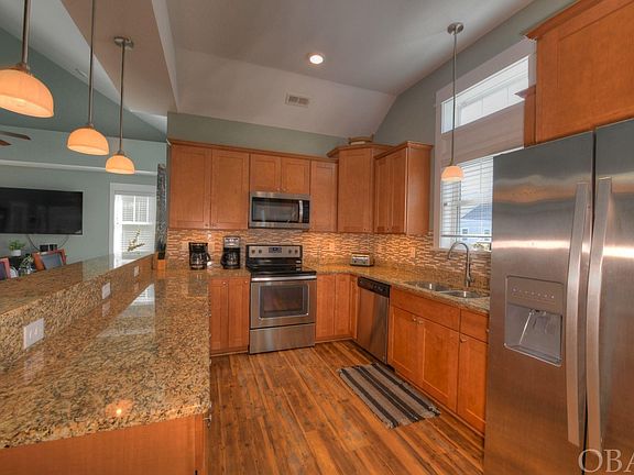 TURN KEY, maintenance free, luxury townhomes. That is exactly what you have found with this Beacon Villas unit in Corolla Light. Enjoy its desirable location tucked near the entrance to the beach walkway. This four bedroom (3 ensuite), four and a half bath unit is exactly what you have been looking for. On the main level you will find LVT flooring throughout all the main areas. The large kitchen is perfect for entertaining as it opens to the dining and great room areas, complete with granite countertops, stainless steel appliances, solid wood cabinetry, and bar seating for 4 people. Looking out into the great room enjoy the cathedral ceilings with skylights that enhance the natural lighting in the room. Want to enjoy the sunset, step out onto your front sundeck through the slider door in your great room. In addition, you will find 2 of the primary en-suite's with custom tiled showers and granite vanities. Are you looking for additional privacy in your en-suite? Head upstairs for the 3rd primary bedroom that adds a little distance from the hustle and bustle of the main living area with all the same great features. Lastly, the ground level includes the 4th bedroom, large game room, and access to the screened in porch with hot tub. Just a 7 minute walk to the beach up Shad street this makes for the perfect primary, secondary, or investment property. In addition you have access to all of the Corolla Light amenities including the Trolley Service, Fitness Center, Oceanfront Pool, and MORE!