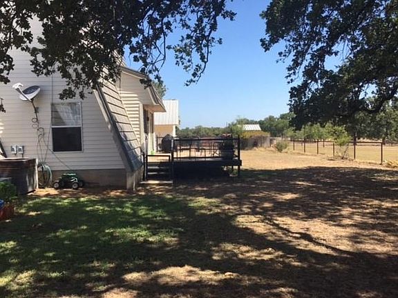 Quality Steel Frame Home on 5 acres Big country kitchen /dining area 3 large living areas one could be a study , craft room or convert into a bedroom Huge deck /back porch area Unattached garage/carport with half bath and lots of storage areas. Extra bldg that could be a guest house Fruit and Pecan trees garden area chicken pen Fenced and crossed fenced Electric gate opener . Manicured grounds Beautiful setting amongst big Post Oaks .Quiet country living in a Ranch area You will fall in love