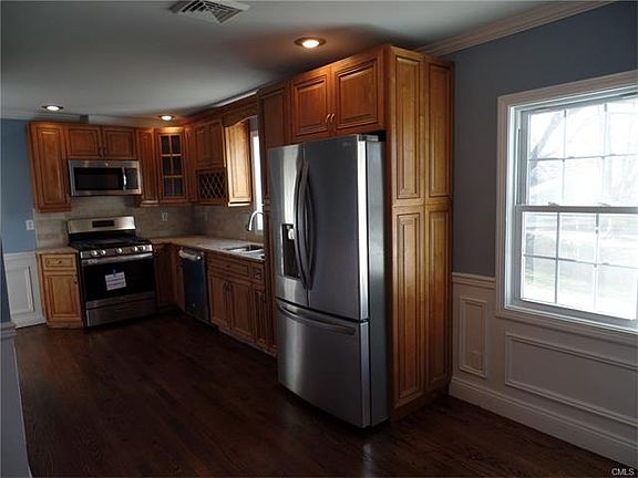 Beautifully renovated ranch in the North End on the Trumbull line. This home features eat-in-kitchen w/granite counter tops, tile back splash, SS appliances, built in wine rack, recessed lighting and hardwood flooring. Bright living room w/recessed lighting and hardwood floor. Full walk-out basement with fire place. The home has new high efficiency gas furnace,windows, siding, roof and hot water tank.