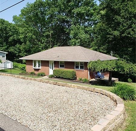 GREAT HOME IN A FANTASTIC LOCATION! Huge Private Wooded rear lot! Large Room sizes and a Peaceful Location are perfect for Comfortable Living! This is a very well maintained home! Spacious eat-in kitchen with newer stove and dishwasher! Nice size living room as well as two spacious bedrooms on the main floor! Full bath on main floor! The home boasts easy to clean vinyl fold windows as well as newer HWT installed in 2019! Newer Furnace with built in humidifier! The partially finished large basement is ready for your creative side! Spacious one car garage with space for some storage! Newer Washer and Dryer (17) included in sale! There is a nice storage shed attached in the rear! Convenient location to Trinity West Elementary School, Trinity High School, Rt 79, Rt 70 as well as Rt 18 and 19! This home is a MUST SEE!