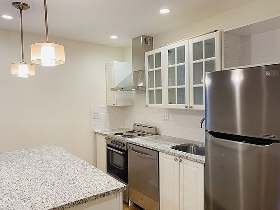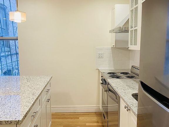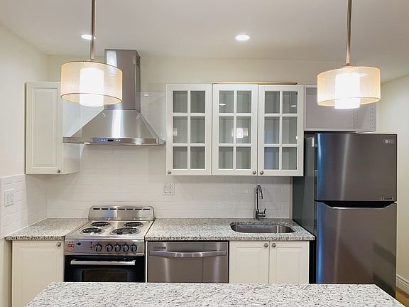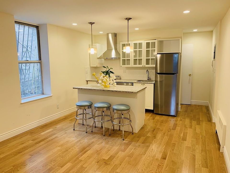 No fee! When sending us a message please let us know when you're looking to move. This is available August 1st which we'd strongly prefer, but we may consider a later move in date. Cats or quiet dogs ok (i.e. no barking pls)! No smoking (of anything) in the building. Completely renovated apartment in historic limestone townhouse, with brand new stainless steel appliances (including dishwasher), granite countertops, tiled backsplash, and real hardwood floors. Split system A/C keeps you cool in the summer and warm in the winter. Huge windows let light pour in, and there's tons of closet space. There's no laundry onsite (though we are working on hooking some up in the basement, hopefully in the next 12 months) but there is a laundromat not even 1 block away. Community: This is a private 1 bedroom apartment in our 4 apartment brownstone. We (the owners) live in the building and are friends with all the other tenants we love the idea of this being more than just a place to live, but also a fun and neighborly little community! The location: The apartment is in a historic limestone on a residential, tree-lined block in Crown Heights, Brooklyn. It's kitty-corner to a beautiful park and a stone's throw from the Brooklyn Children's Museum. There are a few cafes within a couple blocks and some restaurants just around the corner. It's a 10 minute walk from the gazillion bars and restaurants on Nostrand Avenue and a 15 minute walk from hip Franklin Ave. The Brooklyn Museum, Botanical Gardens, Brooklyn Public Library, and Prospect Park are a tad furtherI do the 20-minute walk to the museum and gardens all the time, but those are just 3 quick subway stops away on the 3 line if you're not much of a walker. There is a 3 train about 5 minutes away (which goes straight to Times Square) and an A/C train about 10 minutes away. Street parking is usually easy to find. There is no rental application fee, but before move in we do require a free credit report (from Mint/Credit Karma/etc) and proof of income.