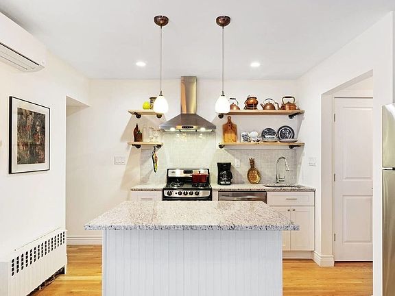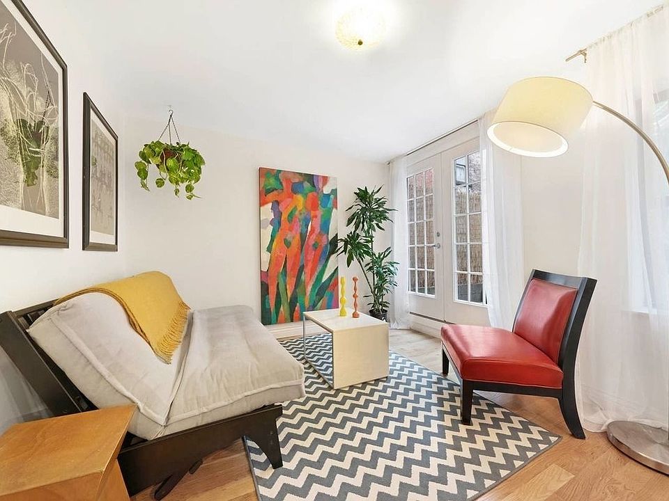Utilities included! This is available October 1st. Available furnished (preferred - as pictured) or unfurnished. Cats or quiet dogs ok (i.e. no barking pls)! No smoking (of anything) in the building. Peaceful, bright garden apartment in a historic limestone building. The space is newly renovated, with hardwood floors, stainless steel appliances, and access to a huge backyard garden. It feels like a cross between a serene country cottage and a chic designer's pad. Community: This is a private 1 bedroom apartment in our 4 apartment brownstone. We (the owners) live in the building and are friends with all the other tenants - we love the idea of this being more than just a place to live, but also a fun and neighborly little community! Appliances: - 2 Mini-splits, one in the living room and one in the bedroom provide both air conditioning and heating - Additional radiators in the apartment keep it cozy - Brand new refrigerator - Brand new dishwasher - Brand new gas stove and oven - Brand new microwave The bedroom: The bedroom is quiet, serene, and private. Because the bedroom is all the way in back of the building, street noise doesn't penetrate it. It's an extension, so there's no one walking above you. There are blackout curtains for those who need darkness to get a good night's sleep. The exposed brick adds charm. The bathroom: Everything in the bathroom is bright, new, and sparkling clean. The kitchen: I love this kitchen. It's newly renovated with gorgeous Moroccan zellige tile, stainless steel appliances, and granite counter tops. The custom wood shelving gives the room an open, carefree feel and allows you to easily access anything you need. The island makes it the perfect gathering place after a long day exploring the city. The living room: The living room and kitchen have an open layout, further fostering a sense of community. The french doors open to the amazing backyard. All the artwork is original. The couch folds out into an incredibly comfortable full bed. The study/nursery: There's a small alcove in front of the bedroom that could be used as a study, nursery or second sitting area. Storage: There are 5 closets for ample storage space throughout the apartment. Two in the main entry way, one in the bedroom, one in the hallway, and one in the kitchen. The backyard: The gem of this building, you have full access to the big, lush, beautifully landscaped backyard! The location: The apartment is in a historic limestone on a residential, tree-lined block in Crown Heights, Brooklyn. It's kitty-corner to a beautiful park and a stone's throw from the Brooklyn Children's Museum. There are a few cafes within a couple blocks and some restaurants just around the corner. It's a 10 minute walk from the gazillion bars and restaurants on Nostrand Avenue and a 15 minute walk from hip Franklin Ave. The Brooklyn Museum, Botanical Gardens, Brooklyn Public Library, and Prospect Park are a tad furtherI do the 20-minute walk to the museum and gardens all the time, but those are just 3 quick subway stops away on the 3 line if you're not much of a walker. There is a 3 train about 5 minutes away (which goes straight to Times Square) and an A/C train about 10 minutes away. Street parking is usually easy to find.
