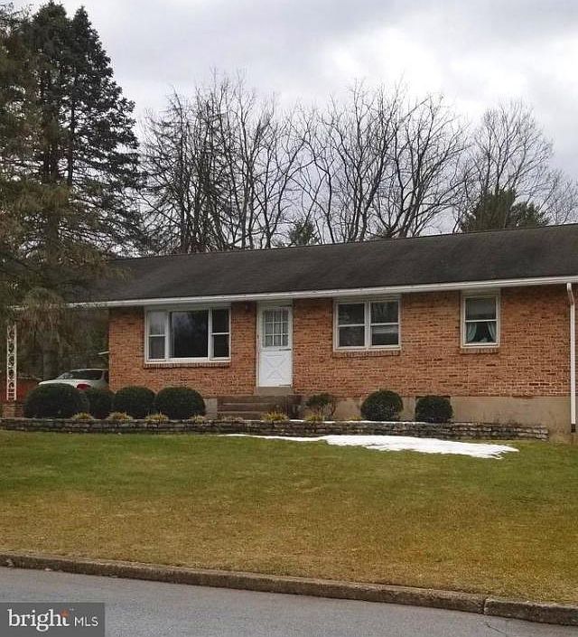 Brick ranch in quiet neighborhood, finished lower level with floor to ceiling stone fireplace, notty pine wood paneling, full bath, hardwood floors, walk up attic, covered carport, home backs to pasture with small stream.