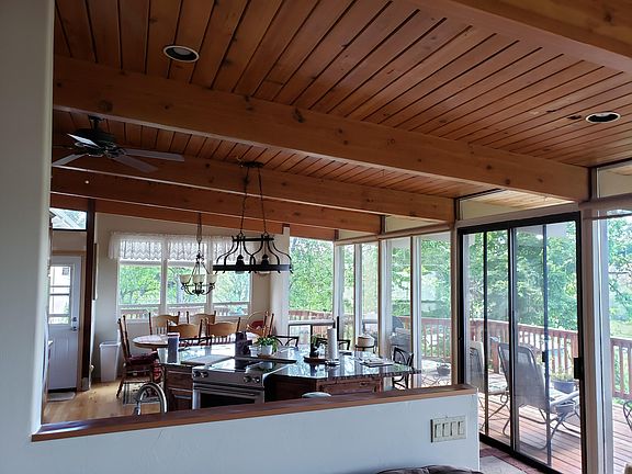 One of a kind Mid-Century modern home located close to the Grants Pass Airport. Large paved driveway & parking area plus add'l large gravel area for RV, equipment, etc. Big detached shop & double attached extra tall garage. In a spacious entry into the home, you'll notice the natural oak floors & open beam ceilings that give this home a warm feel. Light & bright with floor to ceiling windows in open concept kitchen, dining & living room. Granite counters, huge island with seating, knotty alder cabinets (also in bathrooms & laundry room) & stainless appliances. Sliding door out to a full length wrap-around deck with a great view. Very spacious master bedroom & bath, double sinks, jetted tub, walk-in tile shower. Slider out to a small private deck. Two add'l bedrooms-one with a sliding door to the deck. A full guest bath. Plus a gym w/ padded floors, skylights, all glass on one side. All information deemed reliable but not Guaranteed. Buyer to do own due diligence.