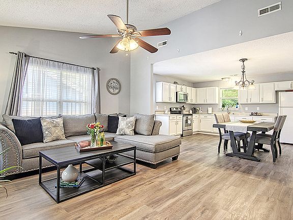 This lovely home has everything you need and is in a fantastic location close to dining, shopping, I-526 and schools! The welcoming front porch has plenty of space for your rocking chairs and a table in case you like to dine al fresco. You will immediately notice that the entire exterior has been freshly painted and with NO HOA you can park your boat/camper! As you walk in the front door you will be drawn in by the open concept floor plan, vaulted ceilings and large windows giving this home an airy and inviting feeling. There is no carpet in this home- the owner recently installed LVP flooring throughout! The kitchen is spacious with great storage and a large pantry. The bedrooms are generously sized with plenty of closet space and the owner'ssuite is on the back side of the home keeping it nice and quiet for those mornings you want to sleep in. The back yard is very private as it backs up to woods and is enclosed by a wooden privacy fence. You will love having the patio and fire pit to enjoy the cooler nights and it's a great spot to hang out with friends and family anytime of the year! This home has been well-maintained and is move-in ready. The crawlspace has been fully encapsulated and the shed in the backyard conveys. Come see it today!