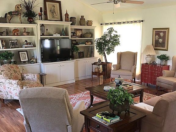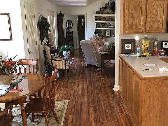Very Well Taken Care Of! Original Owner! 2 bedrooms 2baths 1 Car Garage, Floored Attic, Large Open Living Area W/Vaulted Ceiling-Crown Moulding, Nice Wood Flooring/Laminate, Tile in Wet Areas..No Carpet! Custom Cabinets Throughout House. 2 Dining Areas, Lots of Cabinets. Front & Back Porches Have Brick Floors! Nice Patio Off Covered Back Porch. Brick & Vinyl Combo with Board & Batten Siding Around Entire House...Nice Landscaping Around The House. Low Utility Bills!